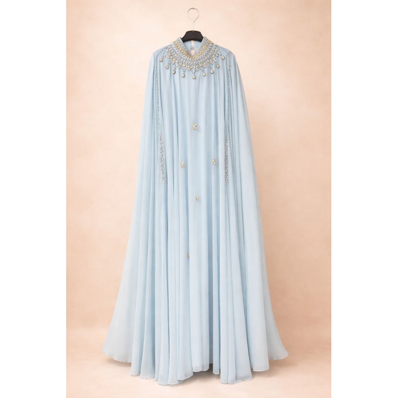Detailed hand karchupi work adds a royal touch while keeping the design modest.